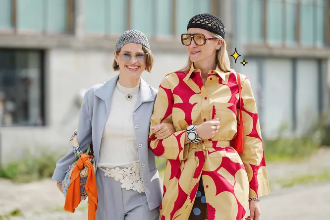 В Копенгагене инфлюенсеры носили эти шапки с яркими свитерами, легкими контрастными куртками и пальто — так что копируя их образы, легко можно составить гардероб на раннюю осень.