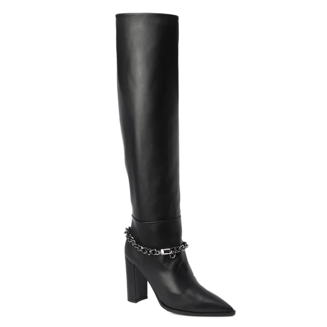 Ну и, вдобавок, самый модный мыс 2022-го года — заостренный. Кстати, каблук — отдельный вид прекрасного: такие скошенные конструкции предложили и Prada, и Loewe, так что на них смело можно делать ставку — асимметрия в тренде. Но если ты стремишься обновить гардероб сапогами вне времени, то предлагаем присмотреться к устойчивым прямоугольным каблукам или изящному kitten heel — именно такие модели мы для тебя и собрали.