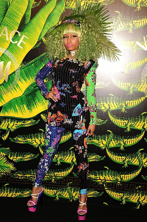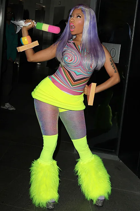 Для максимально ослепляющего эффекта этому образу Минаж не хватает какой-нибудь детали безумно-яркого голубого цвета. За что ты так с нами, Ники?