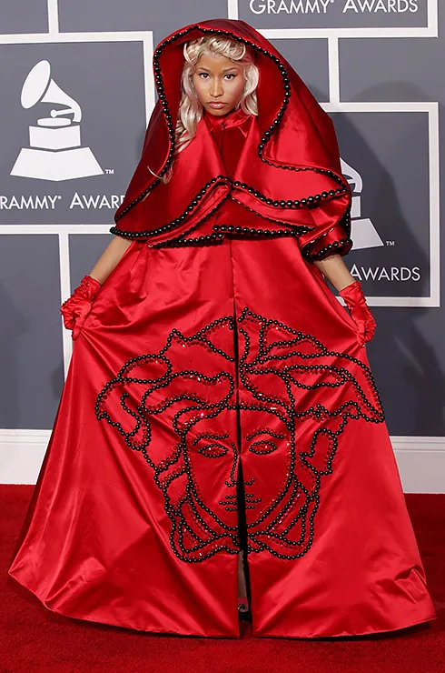 Пугающая красная «ряса» Ники шокировала не только гостей, но и фотографов на очередной премии Grammy несколько лет назад.