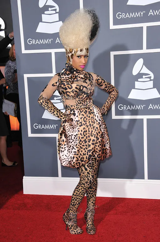Кажется, Ники очень сильно хотела иметь самый яркий и запоминающийся наряд на ковровой дорожке. Леопард, высокая прическа в стиле Круэллы и еще раз леопард — китч как он есть.