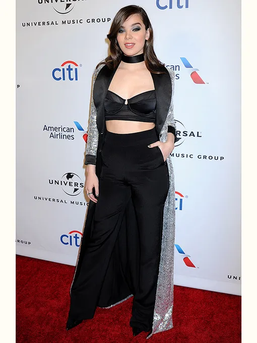 Тем временем стилисты 19-летней Хэйли Стейнфилд продолжают упорно делать из нее «шальную императрицу»: блестящий халат нараспашку и тени до бровей выглядят очень странно и явно диссонируют с юным возрастом актрисы.