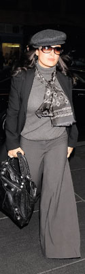 Цветастые облегающие платья Сальма оставила своим менее удачливым соотечественницам. Самая известная мексиканка отдала предпочтение монохромному образу в серых тонах.