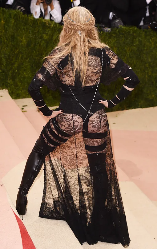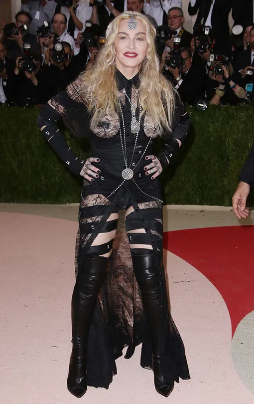 По части оригинальных аксессуаров звезда способна переплюнуть любую старлетку — на ежегодный Бал Института Костюма в 2016 году Мадонна явилась в «голом платье» и с сосками, заклеенными черной изолентой. А вам слабо? (с)