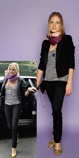 Подчеркнуть линию талии с помощью правильных пропорций и контрастных цветов Платье-футляр по определению смотрится гораздо лучше бесформенных маек, так как его крой предполагает подчеркнутую с помощью рельефов и вытачек талию и идеальную посадку на бедрах. На белом платье отлично смотрится контрастный черный широкий пояс, еще больше визуально «сужающий» талию. Чем шире пояс, тем длиннее платье. Платье, Daniel Hechter, 9462 руб. Ремень, Kira Plastinina, 429 руб. Туфли, Eva Turner, 8850 руб. Браслеты, Lo,390 руб. (1 шт.) | Сместить акценты: отвлечь от недостатков и обыграть достоинства Казалось бы, облегающий топ в поперечную полоску – не самое правильное решение. Но стоит дополнить его свободным укороченным жакетом темного цвета, и модная геометрия начнет работать на тебя. И не скрывай стройные ноги: мини-юбка или узкие брюки отвлекут внимание от талии. Удачная деталь – яркие туфли на каблуке. Топ, Next, 540 руб. Брюки, Cheap Monday, 2500 руб. Пиджак, Zolla, 1190 руб. Босоножки, Kenzo, 15 200 руб. Кулон на цепочке, «Мой Каприз», 90 руб. Шарф, Lo, 450 руб. Сумка, Domani, 3500 руб. |