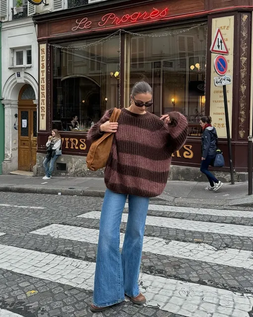 Эстетика old money все еще продолжает определять модные тренды, поэтому яркие расцветки пока не в фаворе у модниц. Самым трендовым в этом сезоне стал коричневый цвет, так что без свитера в такой гамме просто не обойтись. Если простой коричневый свитер кажется тебе слишком скучным, выбрай модели с узорами. Например, с анималистичным принтом, клеткой или полоской.