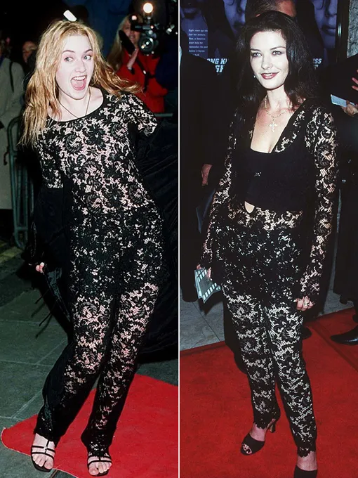 А мы все обсуждаем современные «голые» платья и не знаем, какие провокационные наряды выгуливали (порой одновременно) 20 лет назад Кейт Уинслет (слева) и Кэтрин Зета-Джонс!