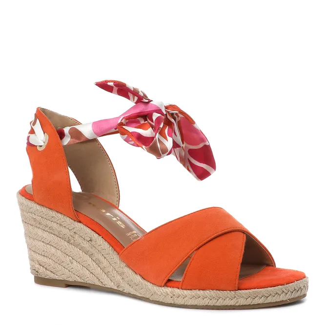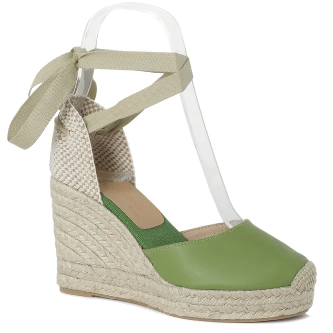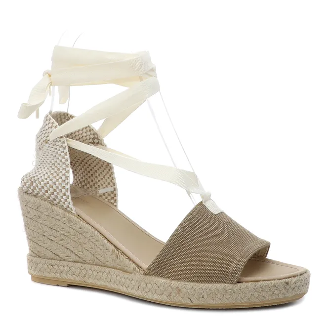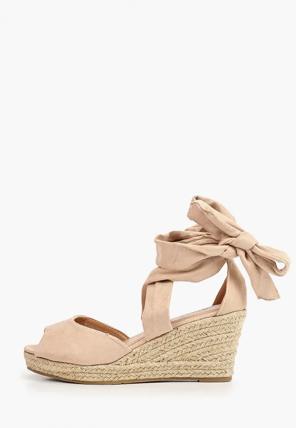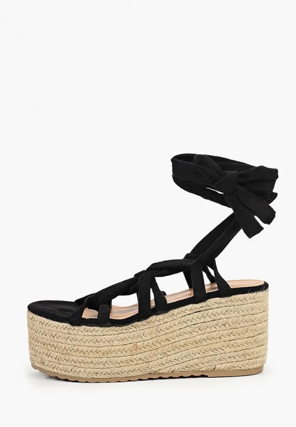 Это, кстати, одна из самых любимых моделей обуви королевы. Босоножки и туфли на джутовой подошве она носит чаще остальных, так что эти танкетки с «балетными» лентами стали ее своеобразным отличительным знаком. Мы, как ты уже заметила, не смогли справиться с искушением выбрать себе такие же. Конечно, по нашей с тобой традиции, делимся лучшими находками летней обуви с лентами, как у Летиции!