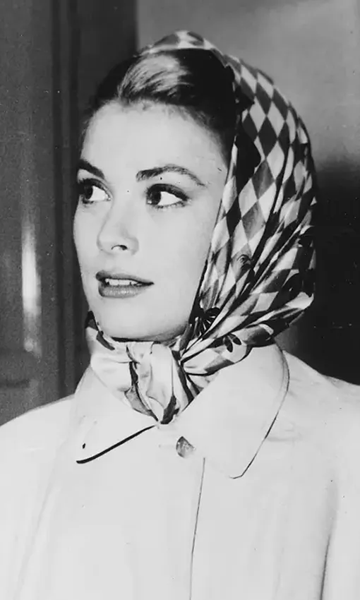 Шелковый платок был одним из излюбленных аксессуаров Грейс Келли. Ее обширная коллекция включала платки брендов Gucci, Hermès, Pucci. Актриса, ставшая принцессой, любила повязывать их на голову, дополняя и платья, и тренчи, и, конечно, пляжные образы, как в фильме 1955 года «Поймать вора».