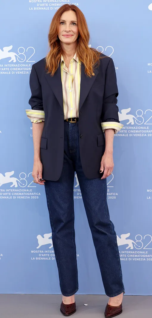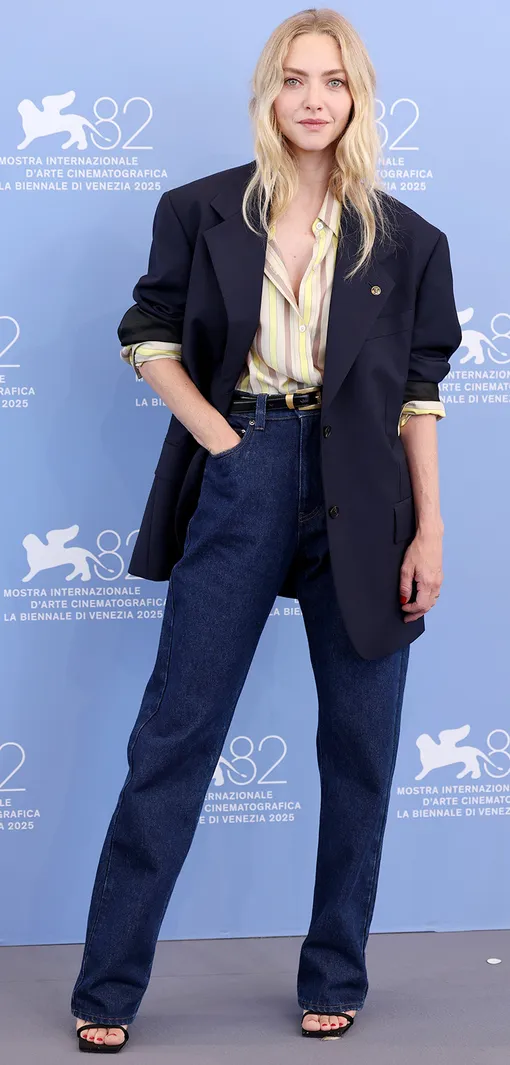 Джулия, судя по всему, позволила, и Аманда вышла ровно в том же жакете, рубашке и джинсах Versace. Скажешь, что это мило – когда две звезды поддерживают друг друга и меняются нарядами? Очень даже согласимся. Но добавим, что...