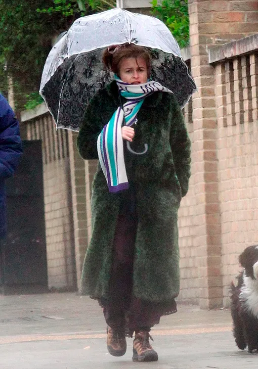 Не изменяет своему странноватому стилю Хелена Бонэм Картер. Бывает, фриковатые образы актрисы выглядят стильно, но все чаще наряды переходят грань экстравагантной моды. Зеленое меховое пальто, кроссовки, полосатый шарф с буквами — такое ощущение, что на Хелену вывалилось содержимое ее шкафа, и она решила ничего не менять и идти так.