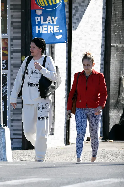 Маргарет Куэлли вторую неделю подряд не снимает спортивный костюм младшего брата, который явно не по размеру актрисе. Если кто-то не может отказаться от домашнего удобства, то Маргарет пока не определилась. Вроде бы есть попытки одеваться по-уличному: классическая куртка, ботинки, кожаная сумка. Но в дуэте с веселыми носками они выглядят неубедительно.