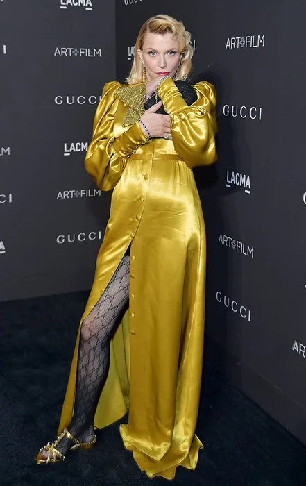 Кажется, Обри Плаза решила вспомнить детсадовские будни — будем честны, белые колготы адекватно выглядят лишь на дошкольниках.