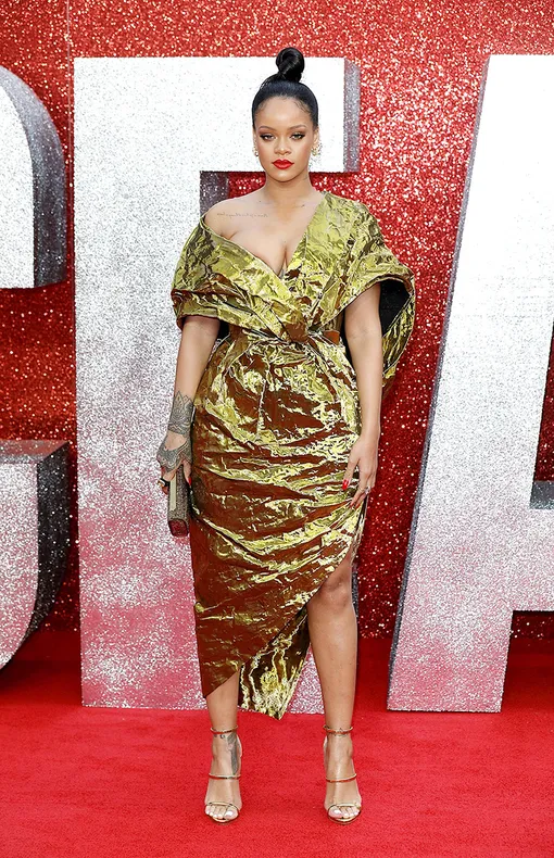 Задумка дизайнера не оправдалась – в этой синтетической ткани Рианна выглядит неуклюже упакованным подарком. Однако все же помнят, что it's ugly until Rihanna says it isn't («это уродливо, пока Рианна не скажет, что нет» – перевод с англ.яз.)?