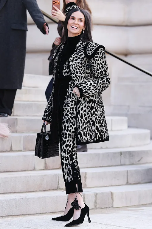 Голливудская дива пошла по проверенному пути — анималистика работает всегда. Но выбрала актриса не классический леопардовый принт, а его вариацию в черном и серебре — получилось довольно нарядно.