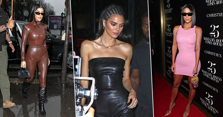 Как мы уже сказали, женщины семьи Кардашьян любят наряды из обтягивающих материалов. Так, одним из самых обсуждаемых латексных платьев стало платье Кендалл Дженнер, в котором она в прошлом году появилась на церемонии Emmy. Черный латекс стал необычным дополнением к классическому вечернему платью с крупным цветочным принтом.