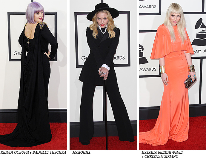 Говоря о классике, стоит отметить Анну Фэрис в темно-синем платье Fitriani, певицу Пинк в нетипичном для нее алом платье-бюстье от Johanna Johnson, Келли Осборн с лиловыми волосами и в черном Badgley Mischka с акцентированными плечами, Наташу Бедингфилд в нежно-оранжевом платье от Christian Siriano, а так же 17-летнюю Лорд в черном платье от Balenciaga в японском стиле.