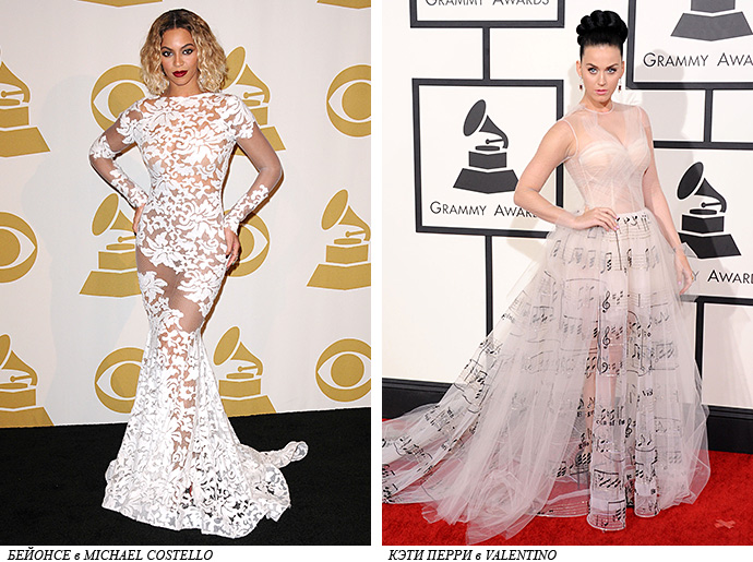 Например, Кэти Перри посетила премию в потрясающее платье с нотным принтом, которое совсем недавно можно было увидеть на кутюрном показе Valentino в Париже — безоговорочная модная победа. Бейонсе в белоснежном кружевном платье от Michael Costello, которое практически не оставляло место для воображения, также стала одной из фавориток модных экспертов и гостей церемонии.