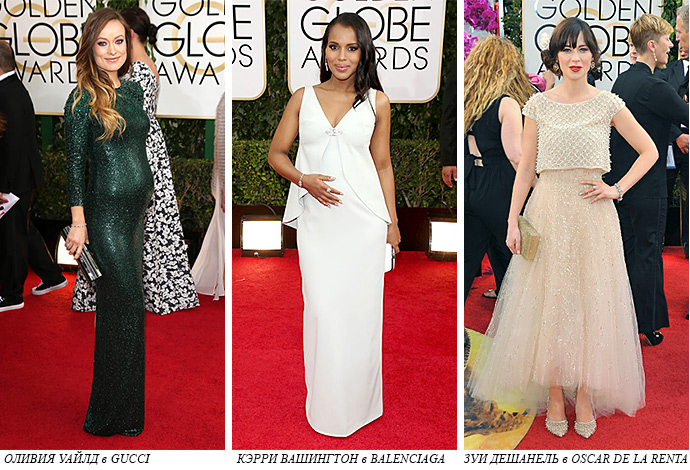 Будущая мама Оливия Уайлд в Gucci Premiere блистала изумрудным цветом, а Кэрри Вашингтон выбрала серебристо-серое платье от Balenciaga. Оба платья подчеркивали уже округлившие животы актрис. Амбер Харт и коллега Леонардо ДиКаприо по фильму «Волк с Уолл-Стрит» Марго Робби пришли на премьеру в платьях с высокими вырезами до бедра от итальянских Домов Atelier Versace и Gucci.