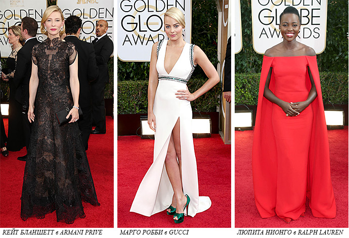 В необычных платьях от непальско-американского дизайнера Prabal Gurung появились актрисы Зои Сандала и Сандра Баллок. Классический черный тоже не остался без внимания: Эми Полер в лаконичном наряде от Stella MacCartney, Джессика Честейн в блестящем Givenchy, Кейт Бланшетт в кружевном Armani Prive и Эмма Робертс в простом, но абсолютно потрясающем платье Lanvin. Все девушки подобрали минимум аксессуаров и сделали ставку на естественный макияж с легкими акцентами.