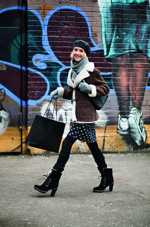| Диана Крюгер Еще одно подтверждение того, что в слякоть можно (и нужно!) выглядеть стильно. Секрет в сочетании вещей разных сезонов. К куртке из овчины Диана надела легкую юбку и плотные колготки – получилось здорово! | Оксана (26), менеджер по рекламе Берет, Marc Cain; Дубленка, Tommy Hilfiger; Платье, Zara; Шарф, American Vintage; Сумка, Oasis; Ботильоны, Carlo Pazolini |