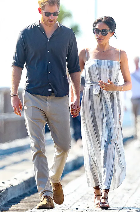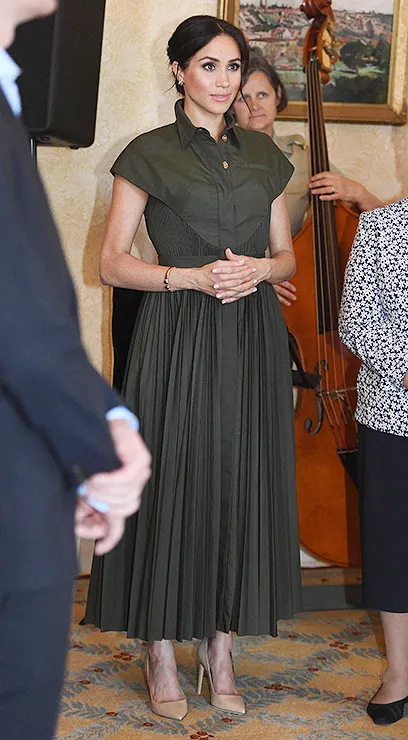 Стоит отметить, что практически все наряды герцогини отличаются несколько свободным кроем — это связано с беременностью Меган, о которой они с Гарри объявили в первый день турне.