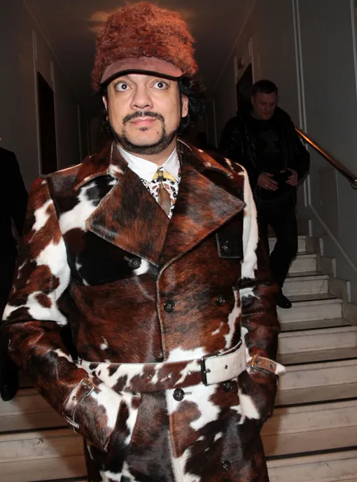 Корова, ставшая пальто Филиппа Киркорова, определенно не ожидала такого конца. А вот из кого пошито кепи звезды, мы так и не смогли определить.