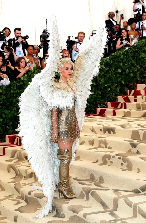 Кэти Перри, несмотря на заметные старания при выборе подходящего образа, все же переборщила с креативностью — наряд певицы больше напоминал хэллоуинский костюм гладиатора с крыльями.
