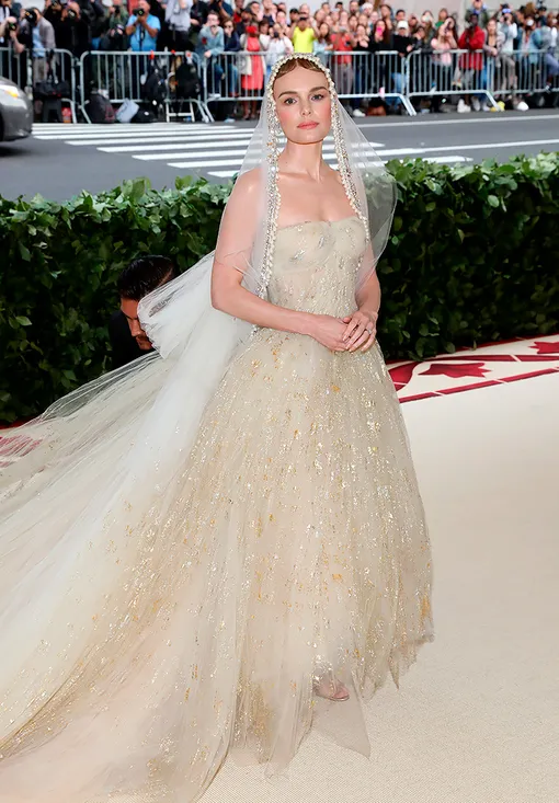 Нежный и женственный образ продемонстрировала Кейт Босуорт — актриса не стала чрезмерно заигрывать с католической символикой, однако тем не менее подобрала наряд, отлично вписывающийся в стилистку бала.