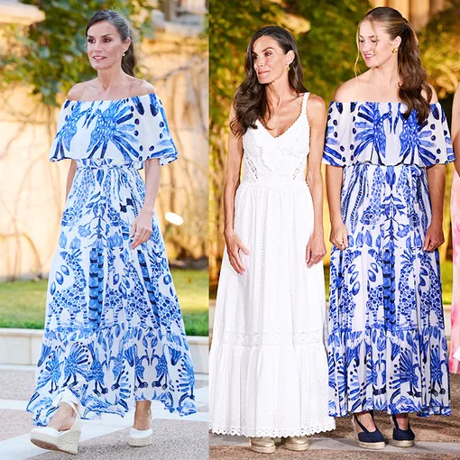Леонор взяла не только саму вещь, но и подсмотрела у мамы приемы стилизации. Принцесса тоже дополниила летний образ эспадрильями на толстой плетеной подошве, которые так любит Летиция. Правда, предпочла совсем другой цвет: вместо белой выбрала черную обувь. Сделала Леонор и схожую с мамой укладку.