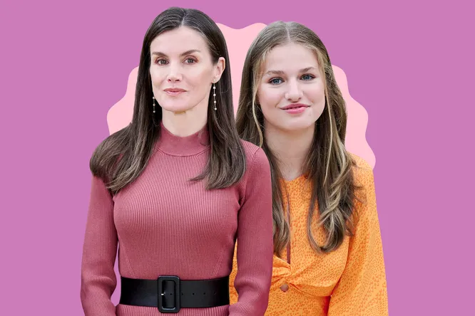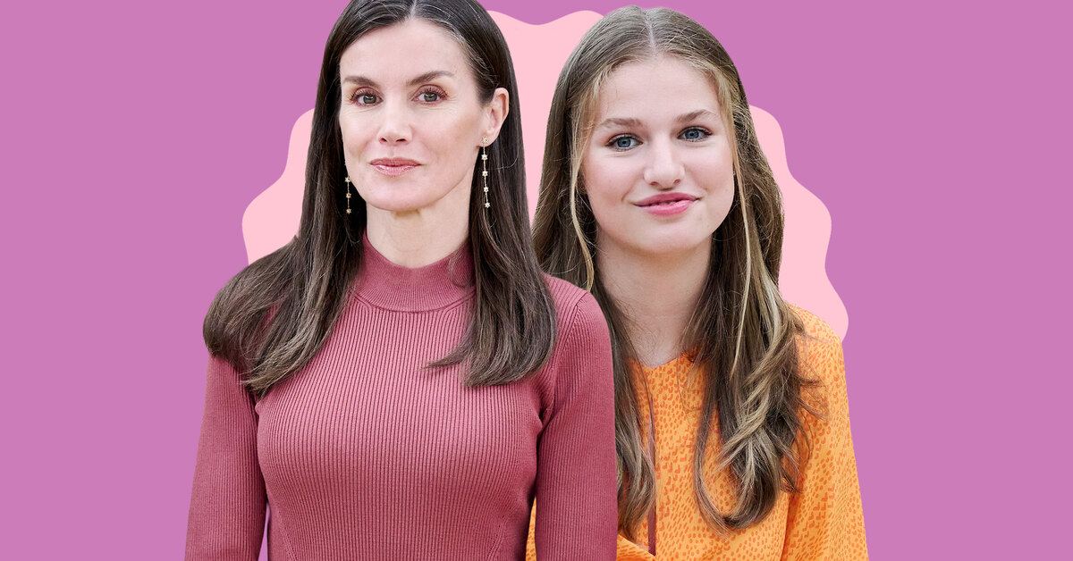 Леонор взяла не только саму вещь, но и подсмотрела у мамы приемы стилизации. Принцесса тоже дополниила летний образ эспадрильями на толстой плетеной подошве, которые так любит Летиция. Правда, предпочла совсем другой цвет: вместо белой выбрала черную обувь. Сделала Леонор и схожую с мамой укладку.