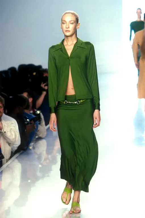Речь о культовом зеленом костюме-двойке из коллекции Donna Karan весна/лето 1996 года. Впрочем, слава к наряду пришла позже — в историю он вошел после того, как Гвинет Пэлтроу надела его в фильме 1998 года «Большие надежды», экранизации Альфонсо Куарона классического романа Чарльза Диккенса.