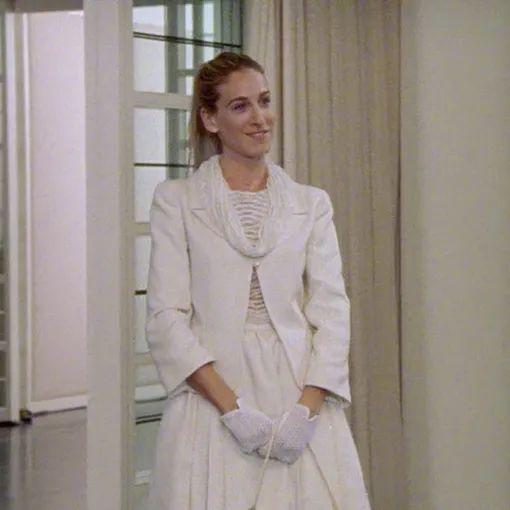 В таком образе мы скорее представили бы Шарлотту, но согласись, total white look очень идет и Кэрри!