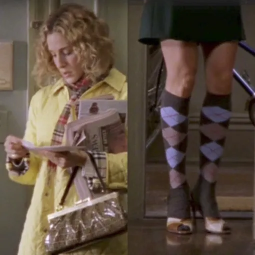 Высокие носки в ромбик и босоножки — такое эклектичное сочетание себе может позволить разве что мисс Брэдшоу. За что мы ее и любим :)