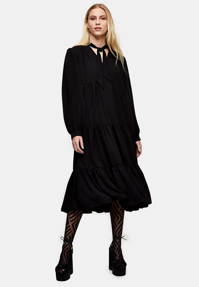 Джинсовая куртка может быть частью не только спортивных комплектов. Достаточно добавить летящее платье миди, высокие сапоги — и образ, вдохновленный богемными 70-ми, готов.