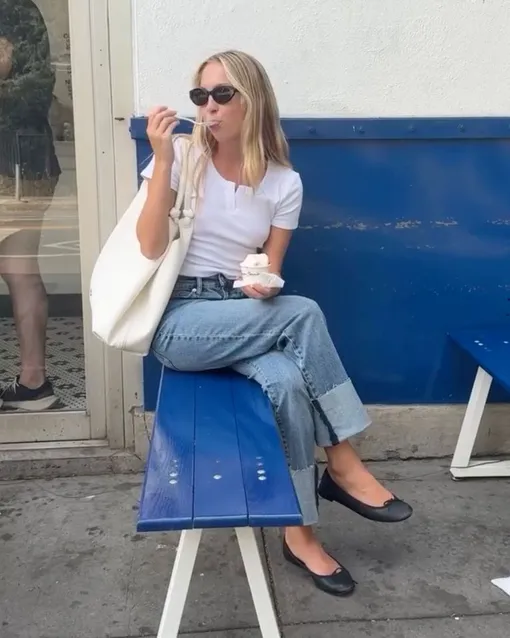 Дочь Кейт Мосс добавила объемную сумку-тоут DKNY в кристально белом цвете к своему базовому образу с футболкой и джинсами с отворотами — и получился простой, легкий, современный и непринужденно стильный образ. Согласись, что будь у Лилы черная или даже красная сумка, — образ бы так не заиграл.