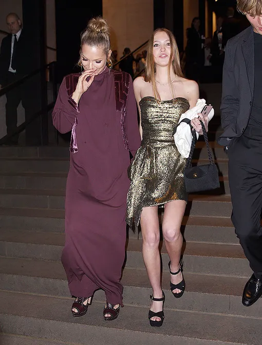 Трудно придумать случай и мероприятие, на котором этот наряд Кейт Мосс будет выглядеть органично. Мрачный, глубокий бордовый цвет не лучшее решение для свадьбы. Фасон платья загадочно отсутствует. Можно назвать его своеобразным чехлом, потому что нет ни линии талии, ни юбки – прямое мешковатое полотно. Кейт может спокойно носить его дома, но не на свадьбе.
