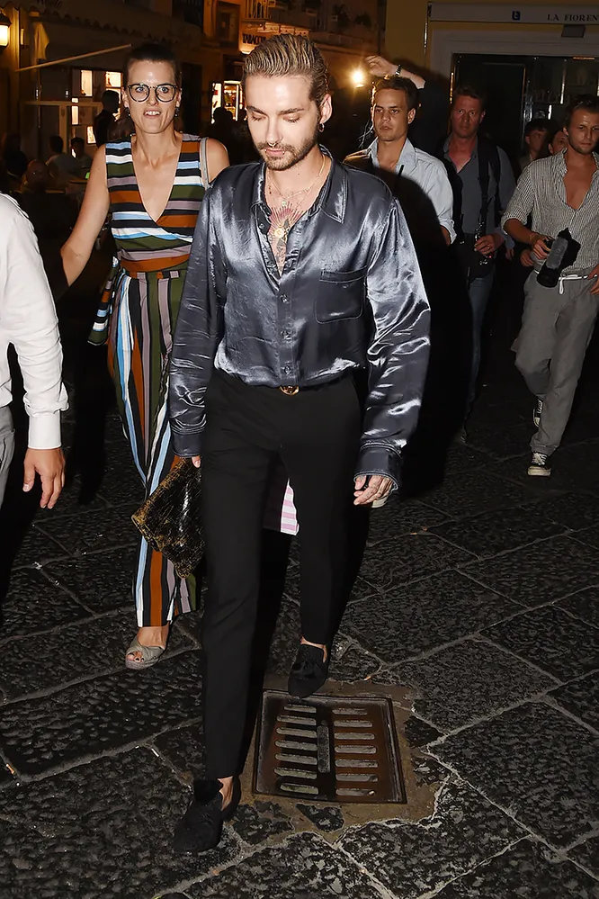 Билл Каулитц явно забыл переодеться и пошел в том, в чем провел последнюю ночь. Его рубашка больше напоминает костюм с детских утренников — не хватает только заячьих ушек и хвостика. Есть еще один вариант: Билла так впечатлила какая-то скатерть, что он решил сделать из нее рубашку. Но вот незадача: либо певец так сильно похудел за время изготовления, либо ткани оказалось слишком много. В общем, провал по всем фронтам и по цвету, и по фасону, и по размеру. Зато Билл получил хороший урок — нехорошо появляться на чужой свадьбе в пижаме.