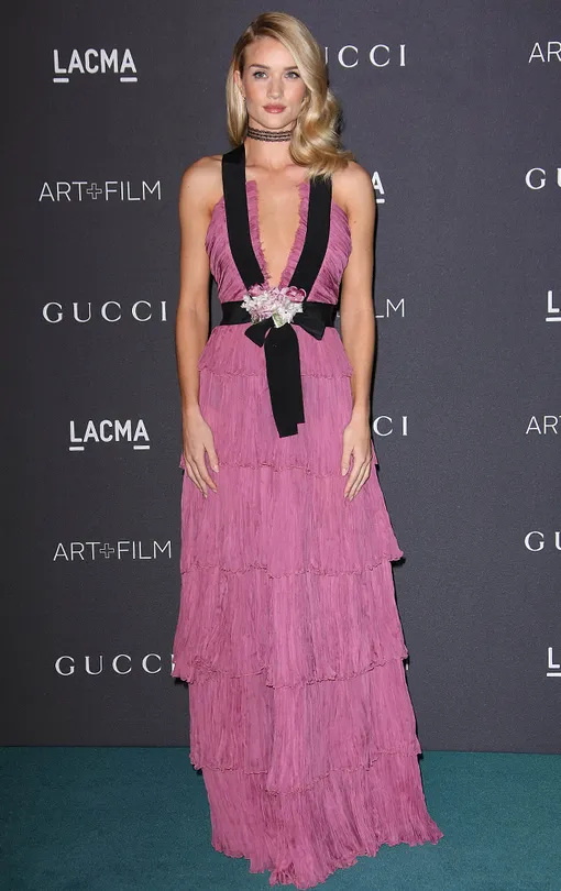 Воздушное розовое платье Gucci две звезды подали совсем по-разному: Ивонн предпочла роковой образ с контрастными аксессуарами и smoky eyes, а Рози, наоборот, «проголосовала» за нежность с легким макияжем.