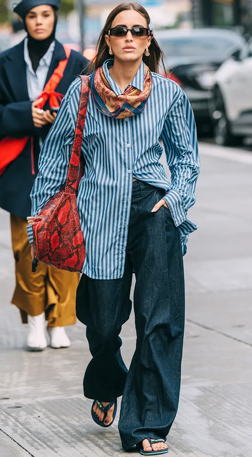 Рубашка в полоску — еще одна классическая вещь, но не спеши списывать ее с модных счетов. В правильной современной стилизации этот бриллиант снова засияет. Сочетай «рабочие» модели курток-рубашек с романтичными полупрозрачными или шелковым платьями, активно используй актуальные аксессуары вроде шелковых платков, вьетнамок или балетов в сетку, и твой лук заиграет совсем по другому.