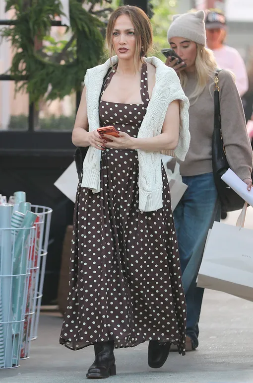 Однако Дженнифер Лопес уверена — не надо расставаться с горошком надолго. Его легко можно адаптировать и к зимним лукам.