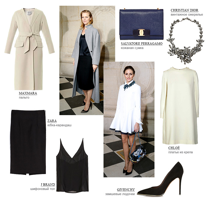 Ева Херцигова и Оливия Палермо отдали предпочтение холодным базовым оттенкам и лаконичным формам. К своему белоснежному платью, Оливия добавила массивное ожерелье и классические лодочки. Минимализм выступает за отсутствие декоративных элементов, поэтому выбирая подобные вещи, в первую очередь, стоит обращать внимание на их качество.