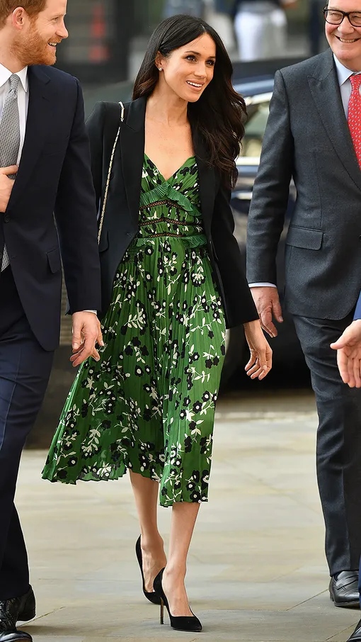 А вот здесь Меган не совсем угадала с цветом — герцогиня буквально «потерялась» в своем наряде.
