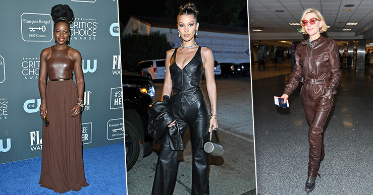 Если вам кажется, что брюки из кожи не подходят для формального образа – посмотрите на это сочетание со строгим жакетом. Чтобы такой комплект выглядел достаточно строго, важно, чтобы жакет практически полностью прикрывал линию бедер.
