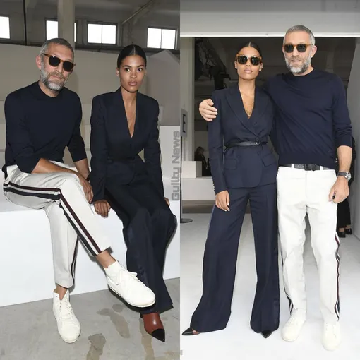 Муж и жена — одна... цветовая гамма! Для очередного совместного выхода Тина и Венсан выбрали синий цвет, одинаково хорошо подошедший обоим супругам.