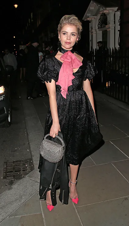 Белое кружево, шитье в сочетании с батистом и тонкими тканями – такие платья хороши весной и летом. В холодную погоду носим их с грубыми ботинками и светлой верхней одеждой, как это сделала Бриджет Малькольм. Она накинула сверху шубку из искусственного меха с длинным ворсом. А летом надеваем сандалии на плоской подошве.