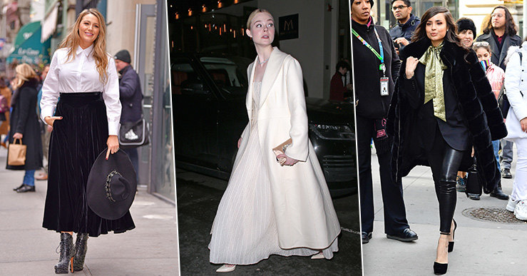 «Платье принцессы», о котором мечтала в детстве каждая из нас. Этой весной подобные платья будут в тренде. Чтобы выглядеть актуально, выбирайте лаконичные варианты с минимумом отделки. Высший пилотаж – аксессуары и дополнения, которые попадают точно в тон. Эль Фаннинг вышла в пальто молочного оттенка, которое идеально совпадает по цвету с ее пышным платьем и туфлями классического фасона.