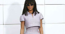 Рианна часто появляется в Chanel, особенно певице милы винтажные украшения французского модного Дома. На показе осенне-зимней коллекции бренда на парижской Неделе моды Ри-Ри появилась в светло-лиловом комплекте из платья, кроссовок и набедренной сумки из весенней коллекции Chanel Couture. Также барбадосская красавица подобрала к образу браслет с массивными жемчужинами и солнцезащитные очки «кошачий глаз».