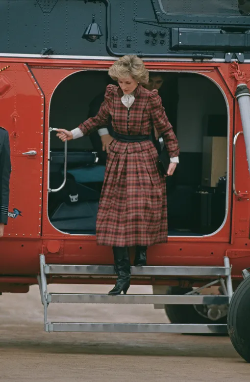 Год спустя принцесса появилась на публике в эффектном клетчатом костюме с юбкой и в черных сапогах. Кстати, современным модницам стоит брать на заметку не только высотку каблука, но и фасон в целом — «морщинистое» голенище сейчас в тренде.