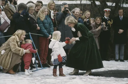 Например, в 1984 году Диана посетила британское посольство в Осло в костюме с юбкой миди из темно-зеленого бархата. Однако неповторимый штрих образу придавали кремовые сапоги на невысоком каблуке, которые координировались по цвету с шелковым бантом.